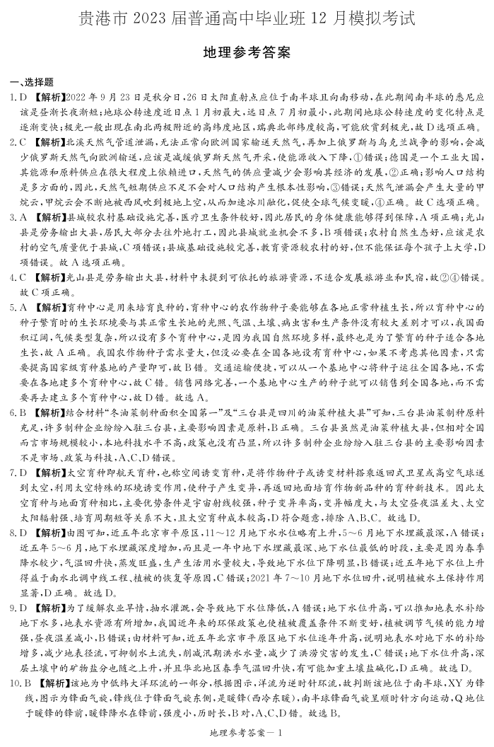 高三文综答案--广西贵港市2022-2023学年普通高中毕业班12月模拟考试