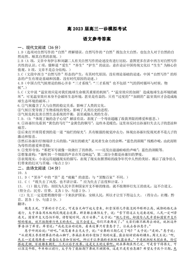 高三语文答案--四川省成都七中2023届高三一诊模拟考试