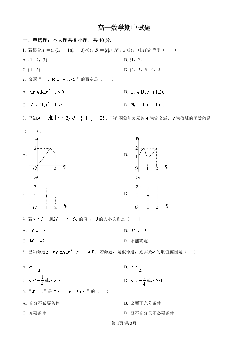 高一数学(原卷版)--湖北省黄冈市黄梅县育才高级中学2025-2026学年高一上学期10月期中考试
