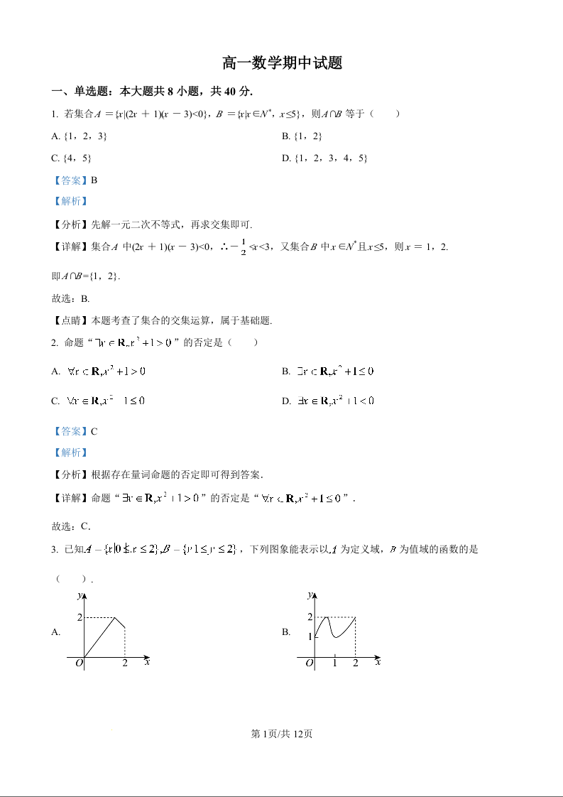 高一数学(精品解析版)--湖北省黄冈市黄梅县育才高级中学2025-2026学年高一上学期10月期中考试