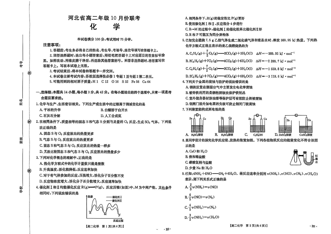 高二化学--河北省保定市保定十校2025-2026学年高二上学期10月月考