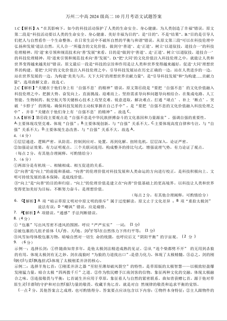 高二语文答案--重庆市万州二中2025-2026学年高二上学期10月月考试题