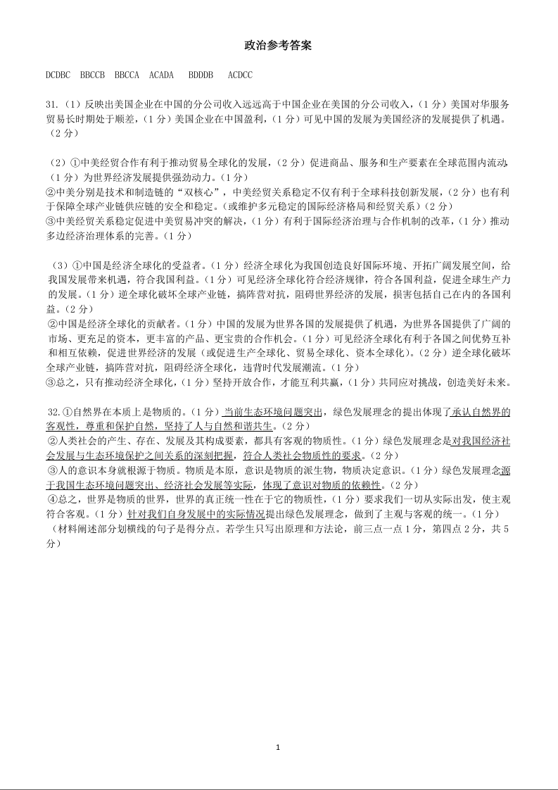 高二政治答案--重庆市万州二中2025-2026学年高二上学期10月月考试题