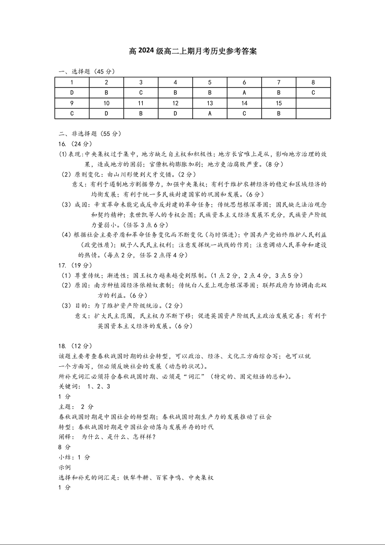 高二历史答案--重庆市万州二中2025-2026学年高二上学期10月月考试题