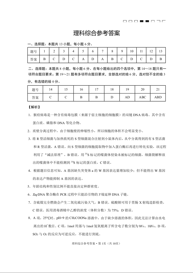 高三理综答案--云南师范大学附属中学23届高三上学期适应性月考卷(二)