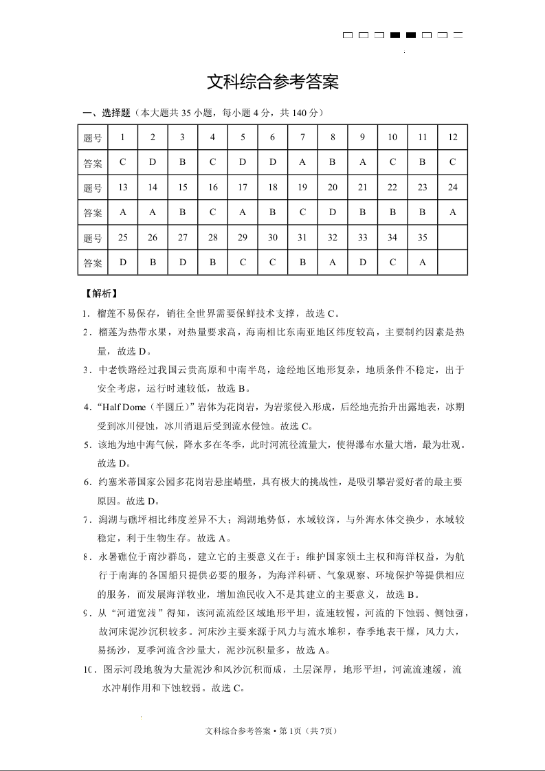 高三文综答案--云南师范大学附属中学23届高三上学期适应性月考卷(二)