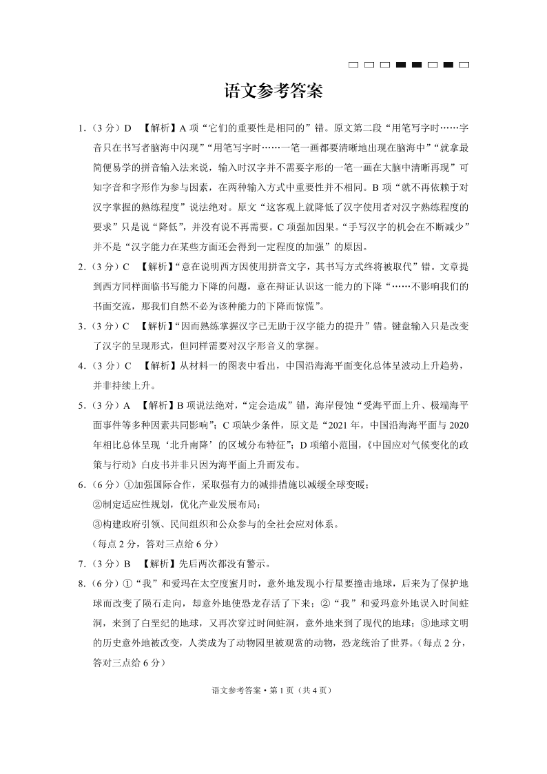 高三语文答案--云南师范大学附属中学2023届高考适应性月考(三)