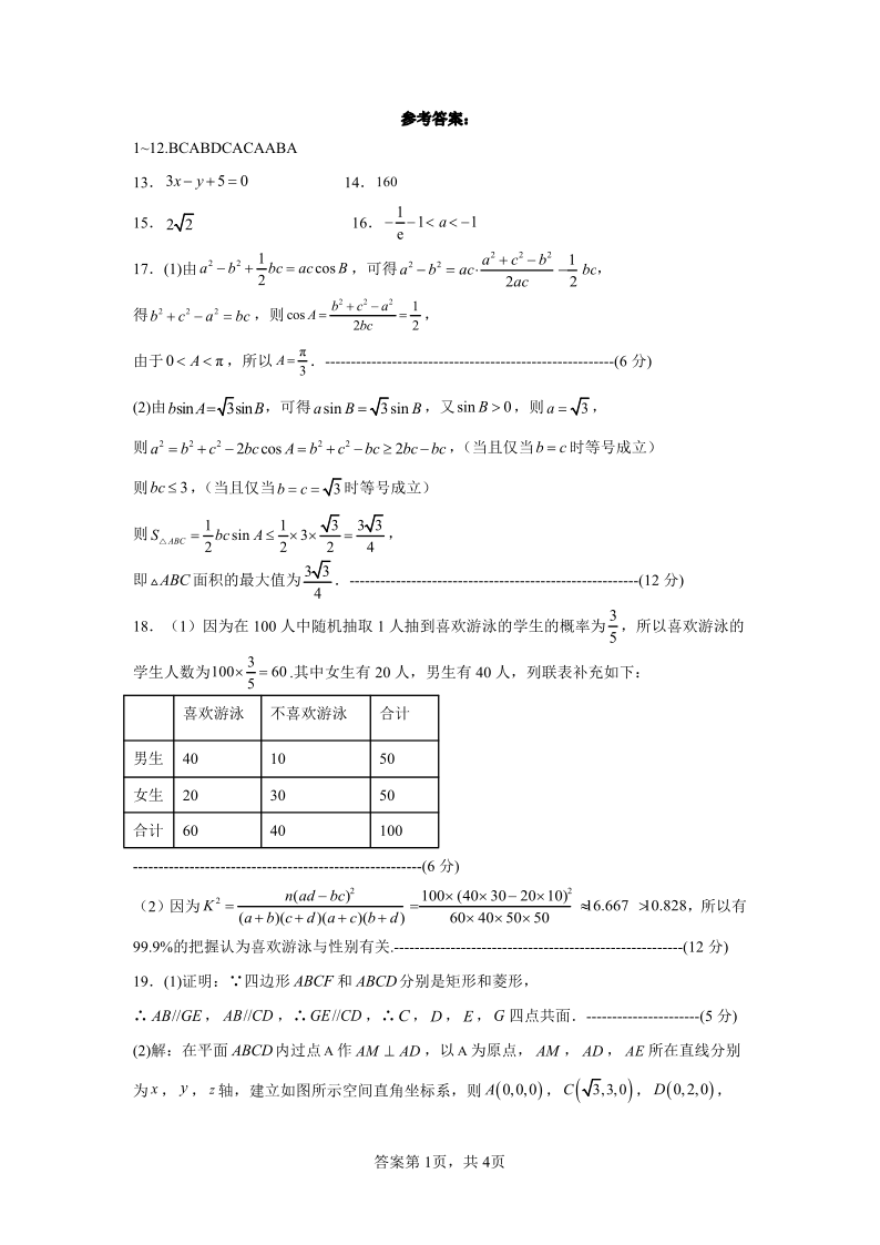 高三理科数学答案--广西桂林联盟校2023届高三9月入学统一检测