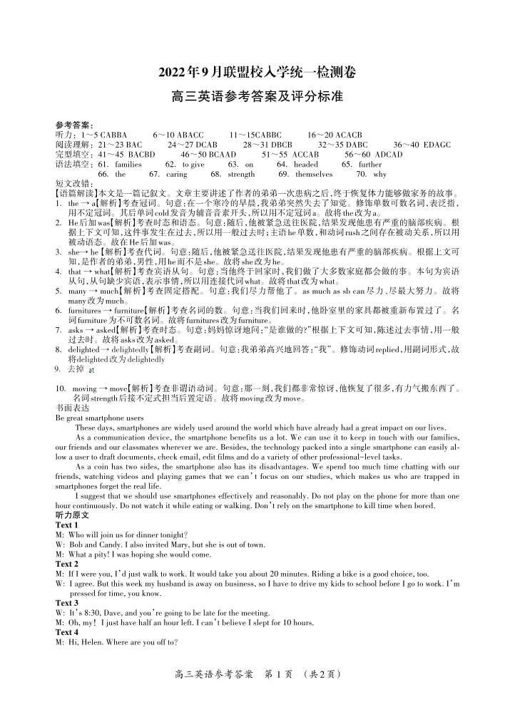高三英语答案--广西桂林联盟校2023届高三9月入学统一检测