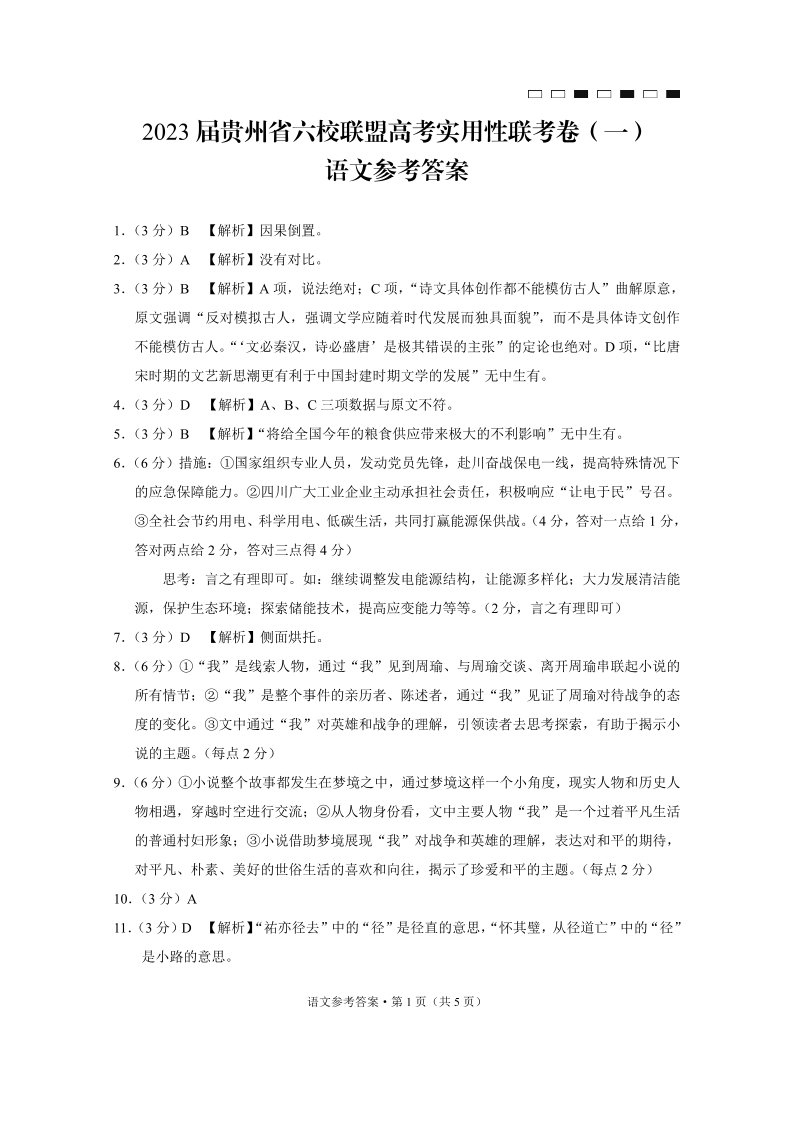 高三语文答案--贵州省六校联盟2023届高三上学期高考实用性联考(一)