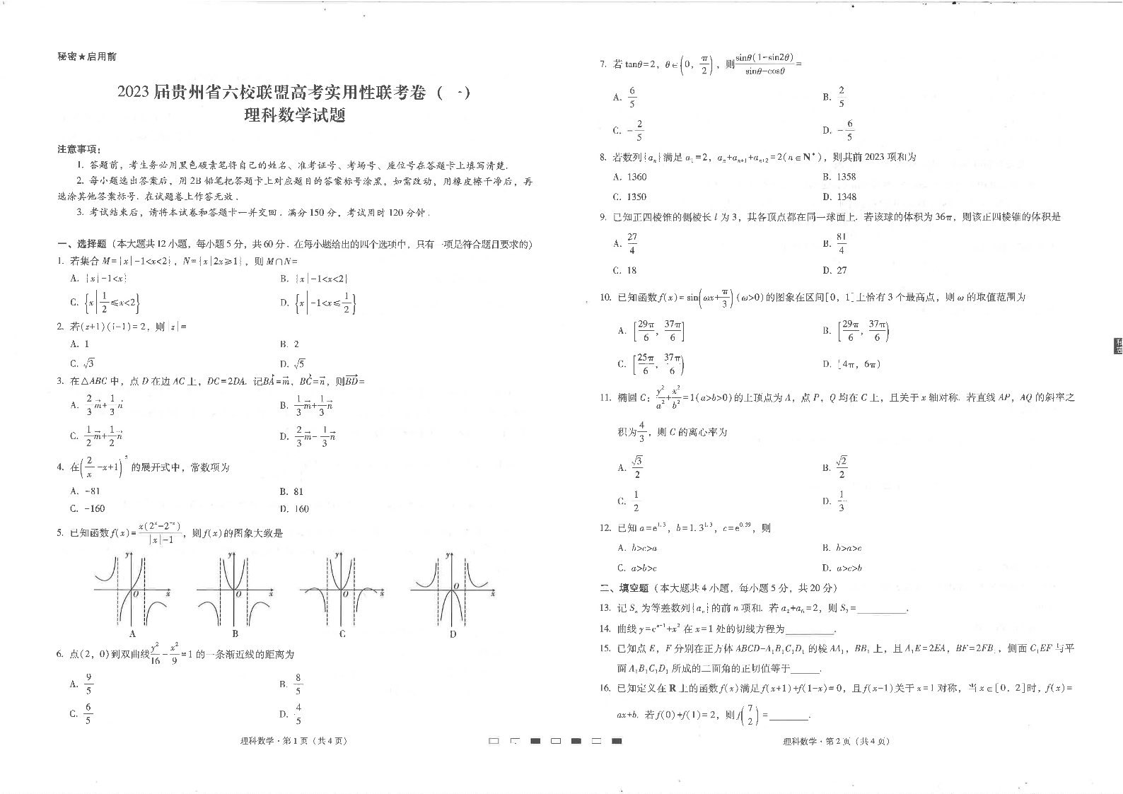 高三理数--贵州省六校联盟2023届高三上学期高考实用性联考(一)