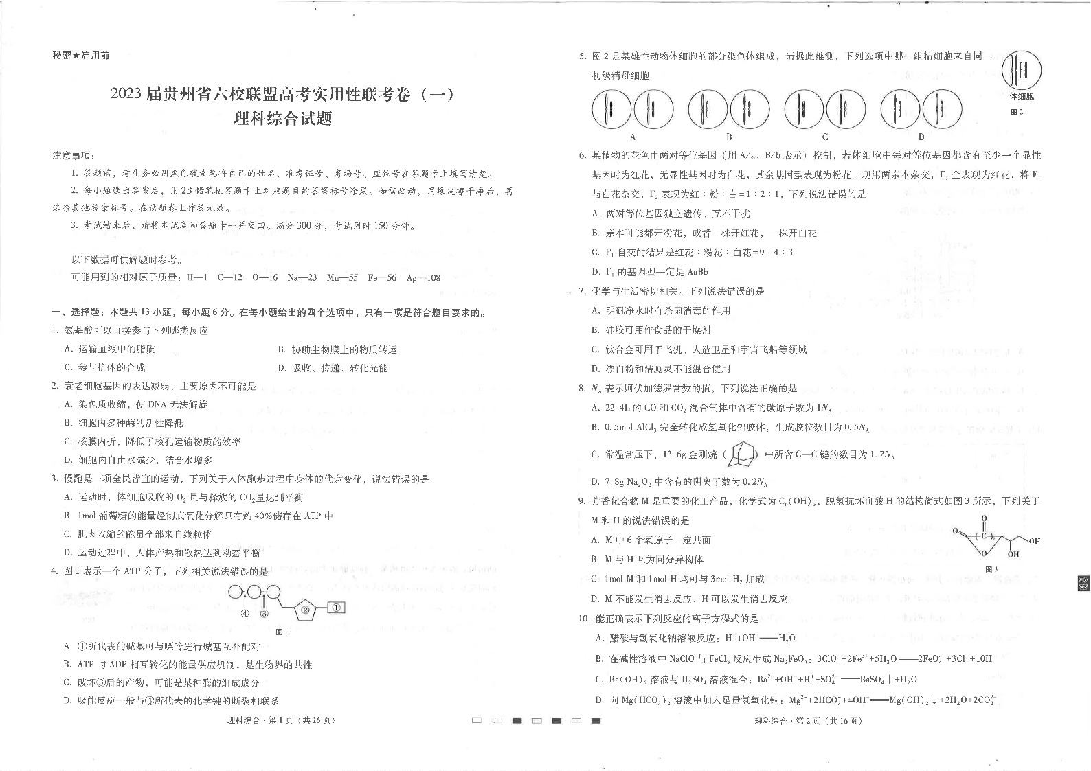 高三理综--贵州省六校联盟2023届高三上学期高考实用性联考(一)