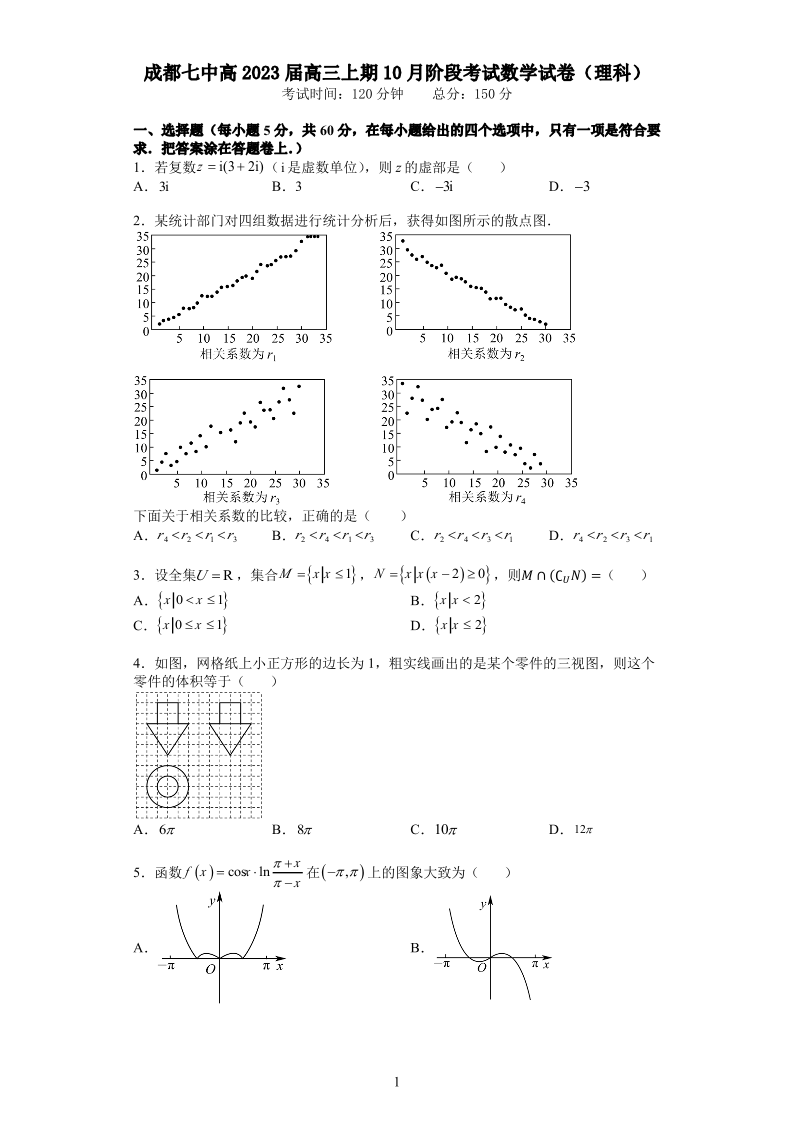 高三理数--四川省成都市第七中学2023届高三上学期10月阶段考试