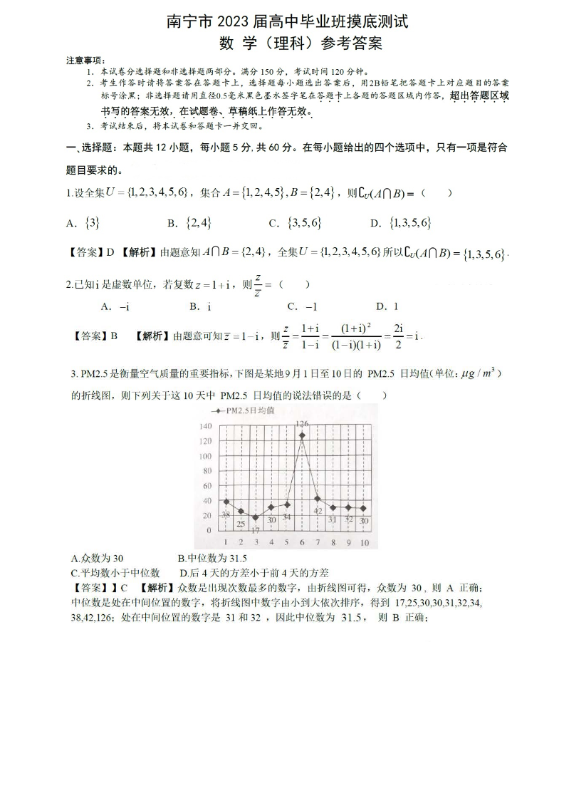 高三理数答案--广西南宁市2023届高三上学期毕业班摸底测试