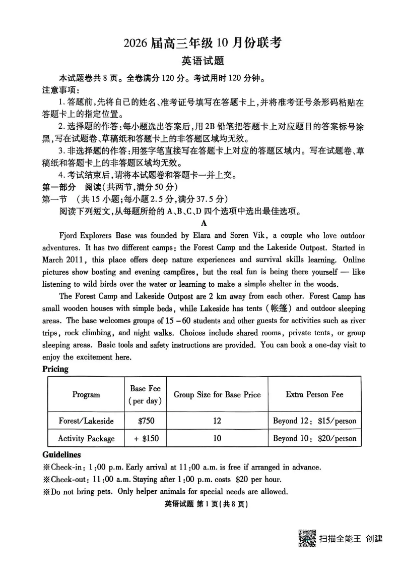高三英语+答案--广东衡水金卷2026届高三上学期十月联考