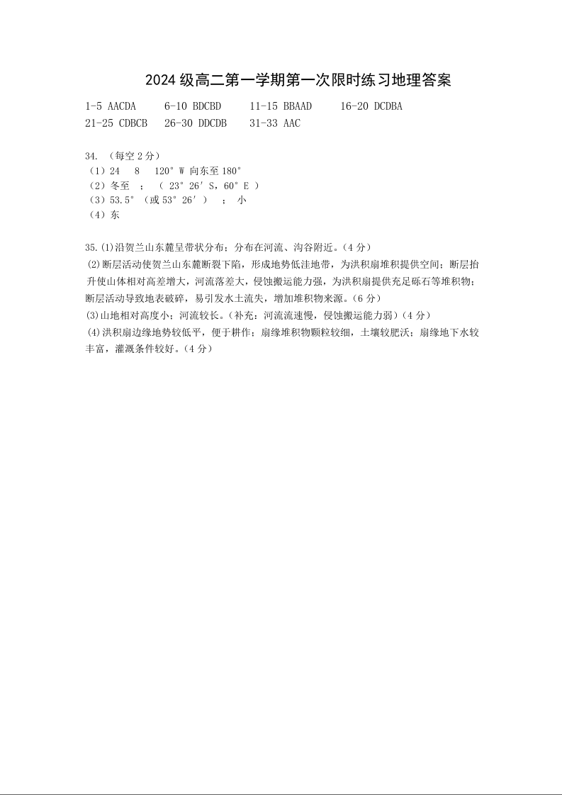 高二地理答案--安徽省合肥市第七中学2025-2026学年高二上学期第一次月考