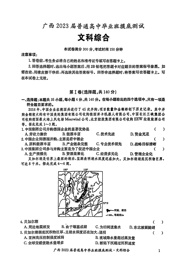 高三文综+答案--广西普通高中毕业班2023届高三上学期摸底测试