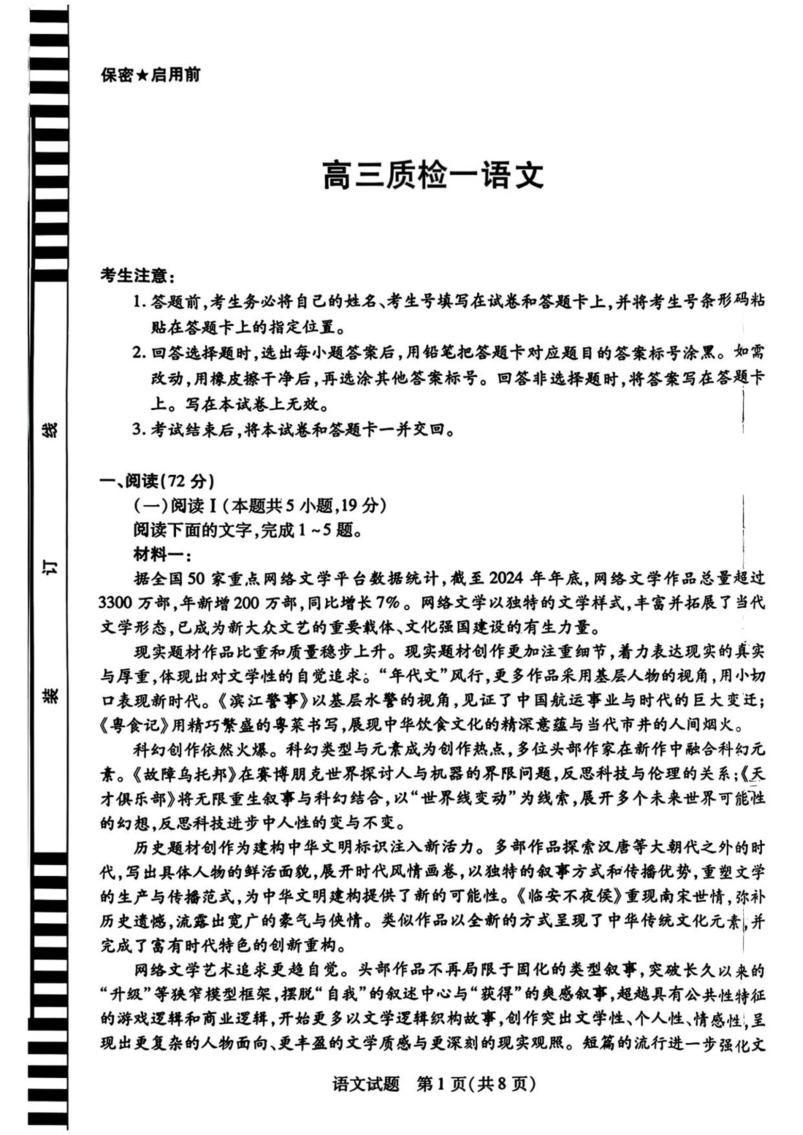 高三语文--湖南省湘一名校联盟&天一大联考2026届高三10月联考