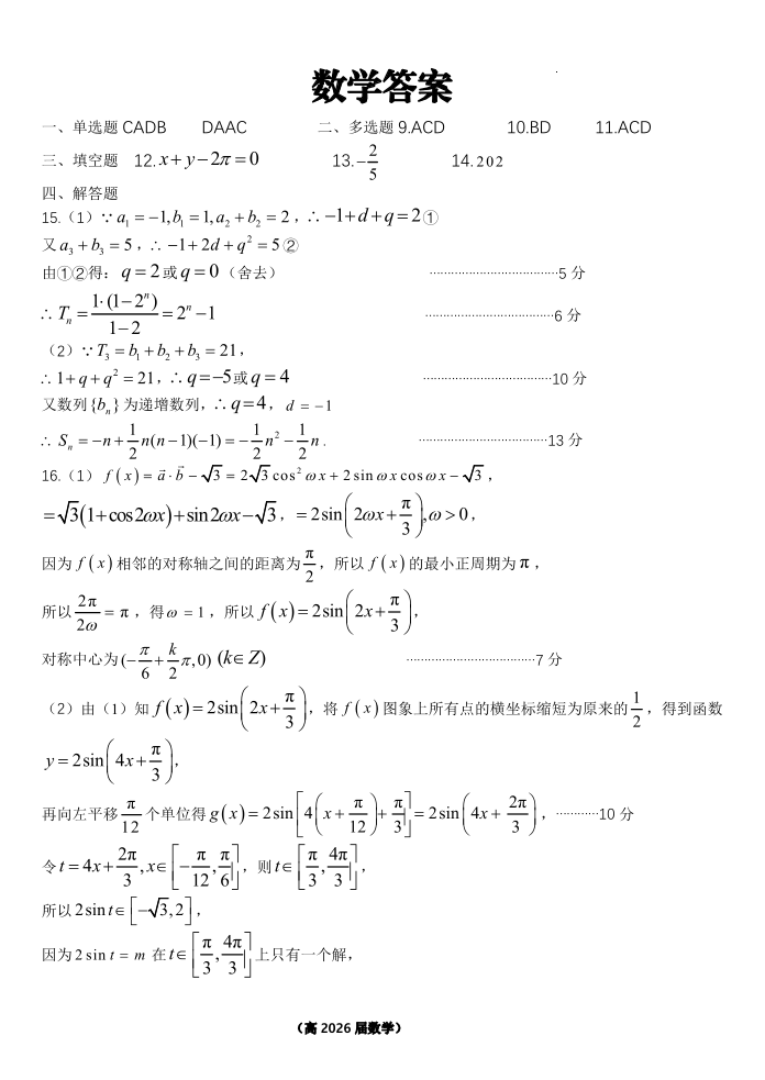 高三数学答案--重庆市名校联盟2026届高三上学期第一次联合考试