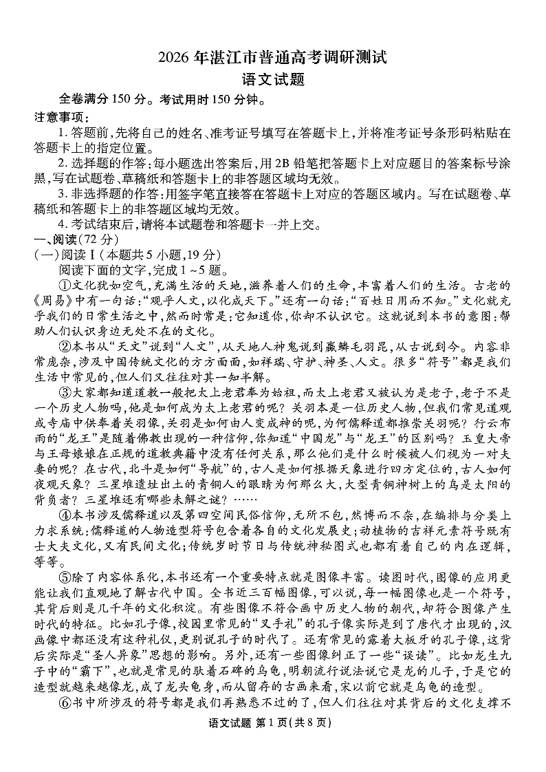 高三语文--广东省湛江市2026届高三普通高考10月调研测试