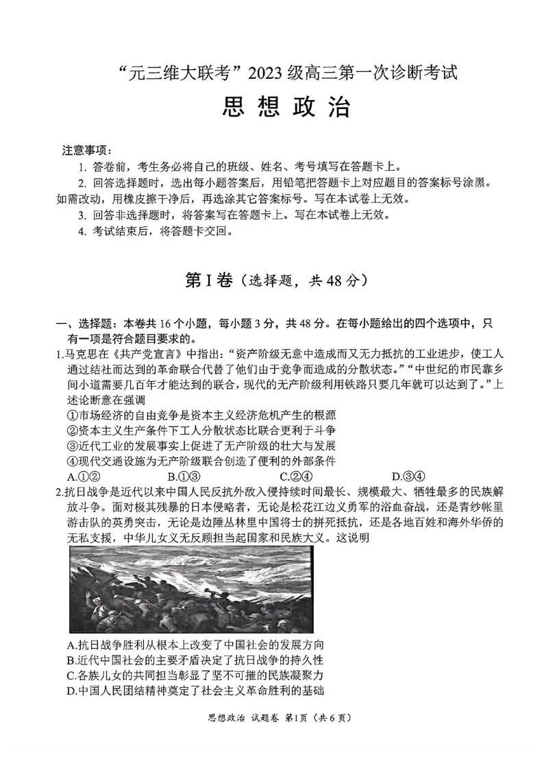 高三政治+答案--四川省元三维大联考2023级高三第一次诊断考试