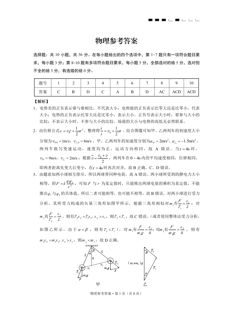 高三物理答案--重庆市巴蜀中学2026届高考适应性月考卷(三)