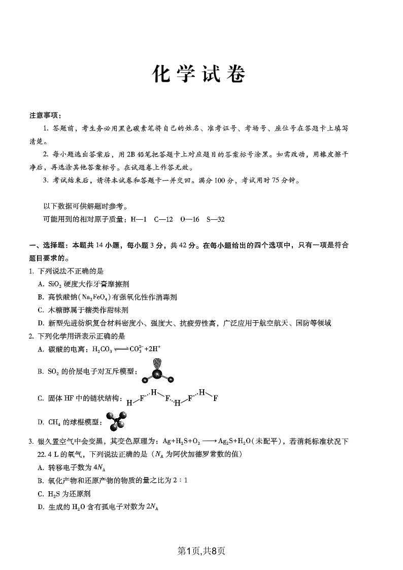 高三化学--重庆市巴蜀中学2026届高考适应性月考卷(三)