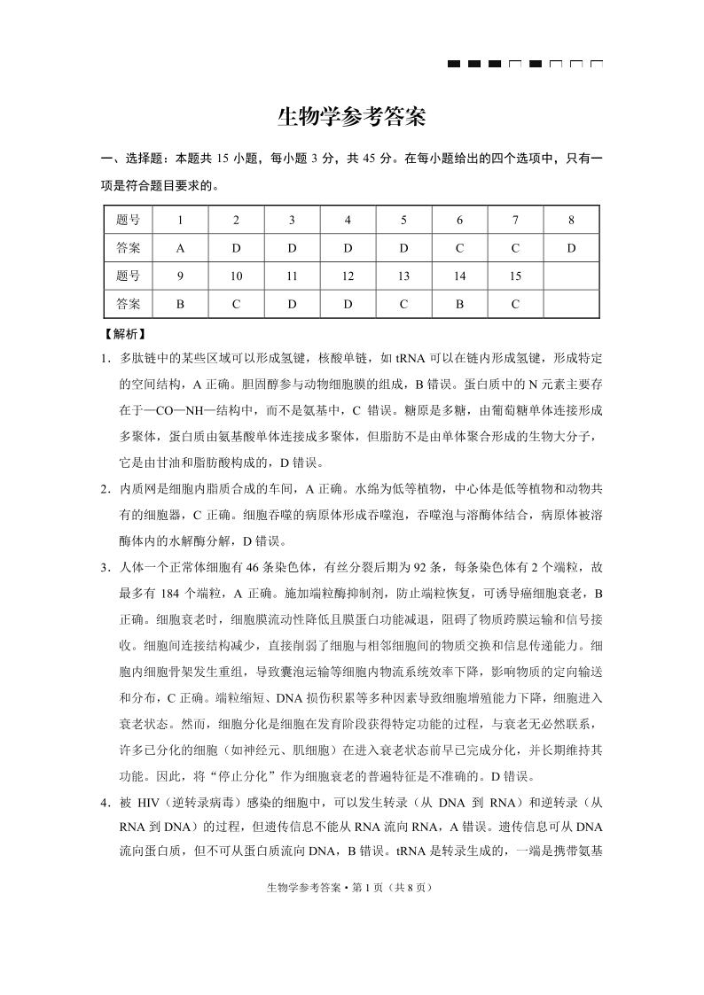 高三生物答案--重庆市巴蜀中学2026届高考适应性月考卷(三)