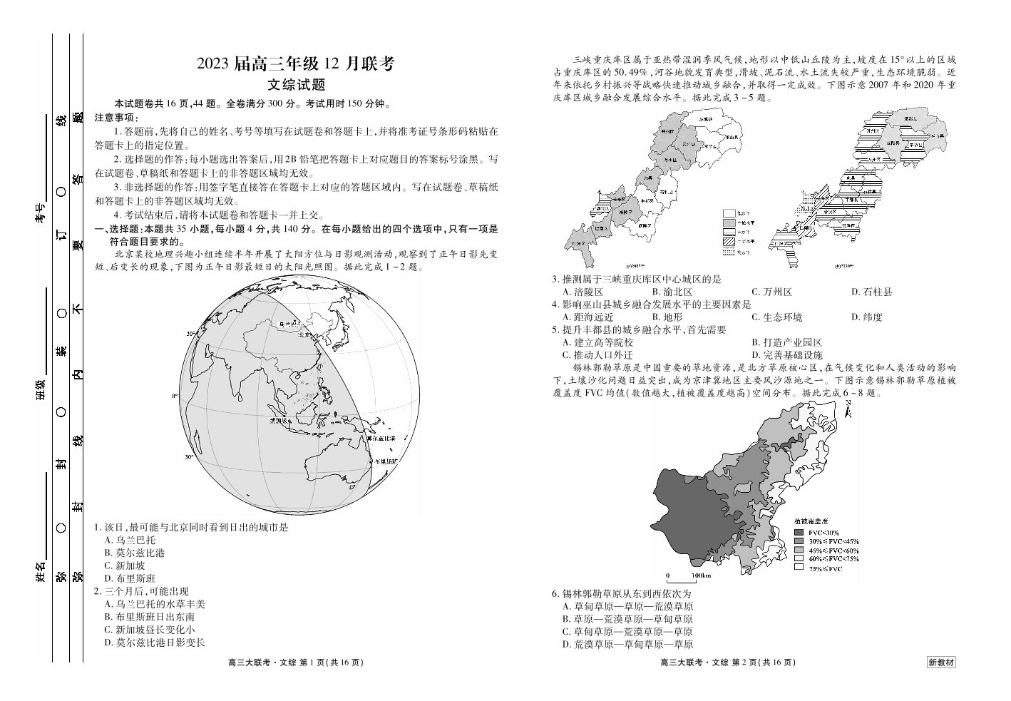 高三文综--山西省衡水金卷2023高三12月联考