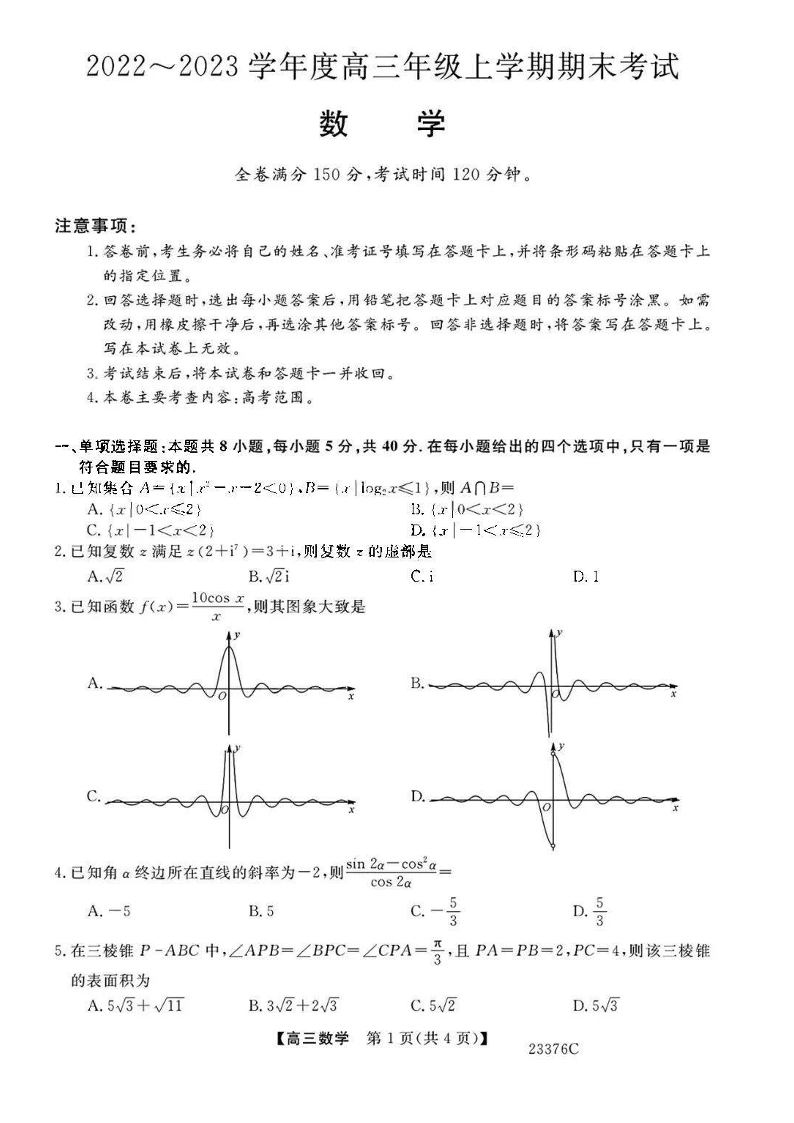 高三数学+答案--金科大联考2022-2023学年度高三年级期末考试