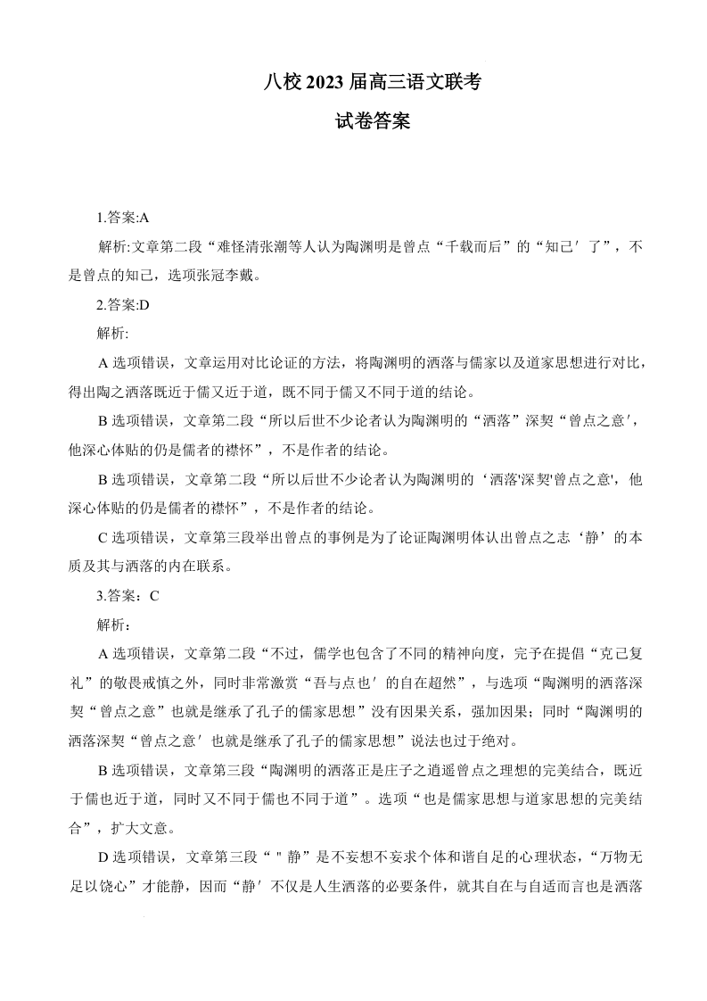 高三语文答案--江西省新八校2023届高三上学期第一次联考