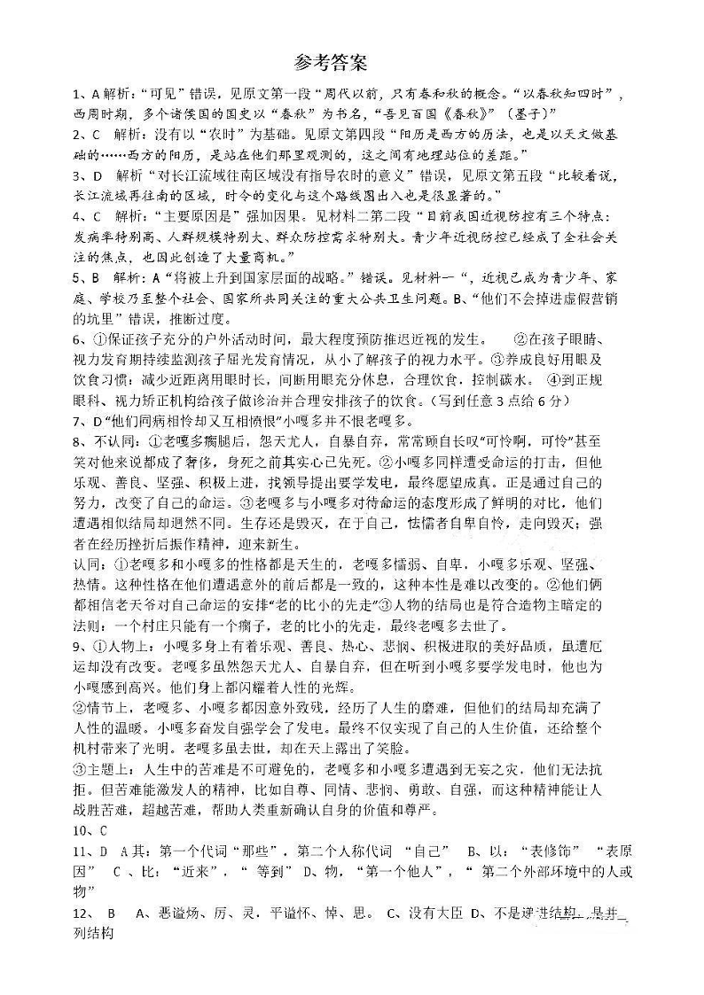 高三语文答案--江西省五市九校2023届高三1月联考