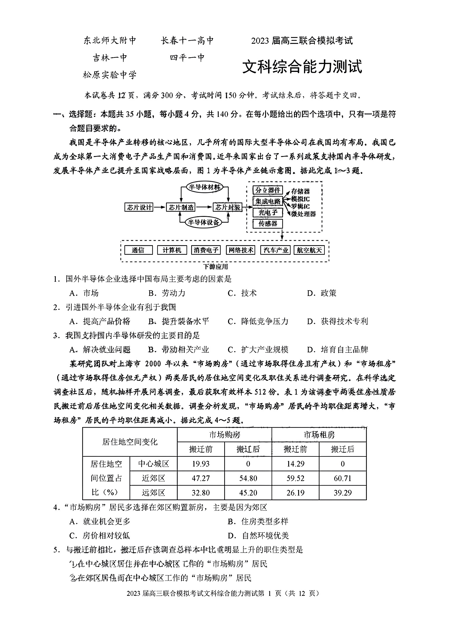 高三文科综合--吉林省五校2023届高三上学期联合模拟考试