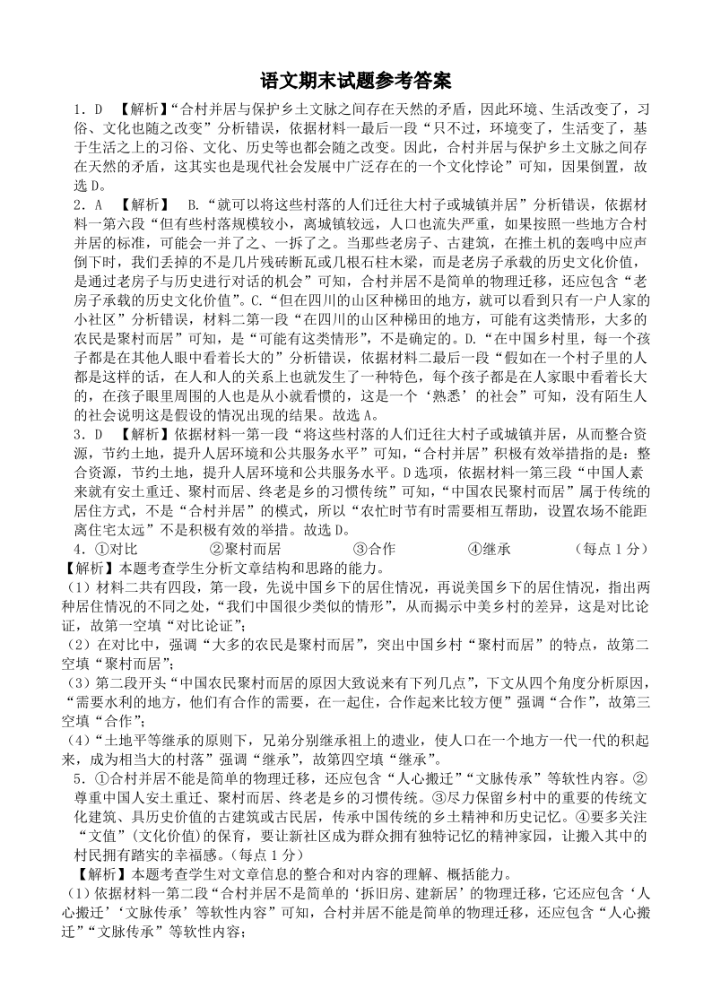 高三语文答案--黑龙江省齐齐哈尔市2023高三上学期期末考试