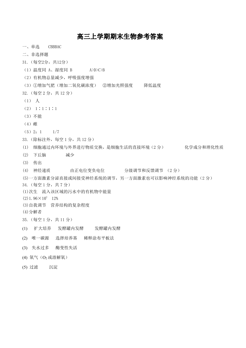 高三生物答案--黑龙江省齐齐哈尔市2023高三上学期期末考试