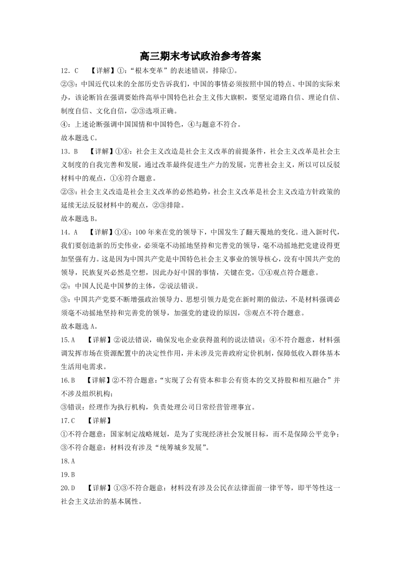 高三政治答案--黑龙江省齐齐哈尔市2023高三上学期期末考试