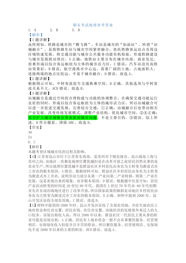 高三地理答案--黑龙江省齐齐哈尔市2023高三上学期期末考试