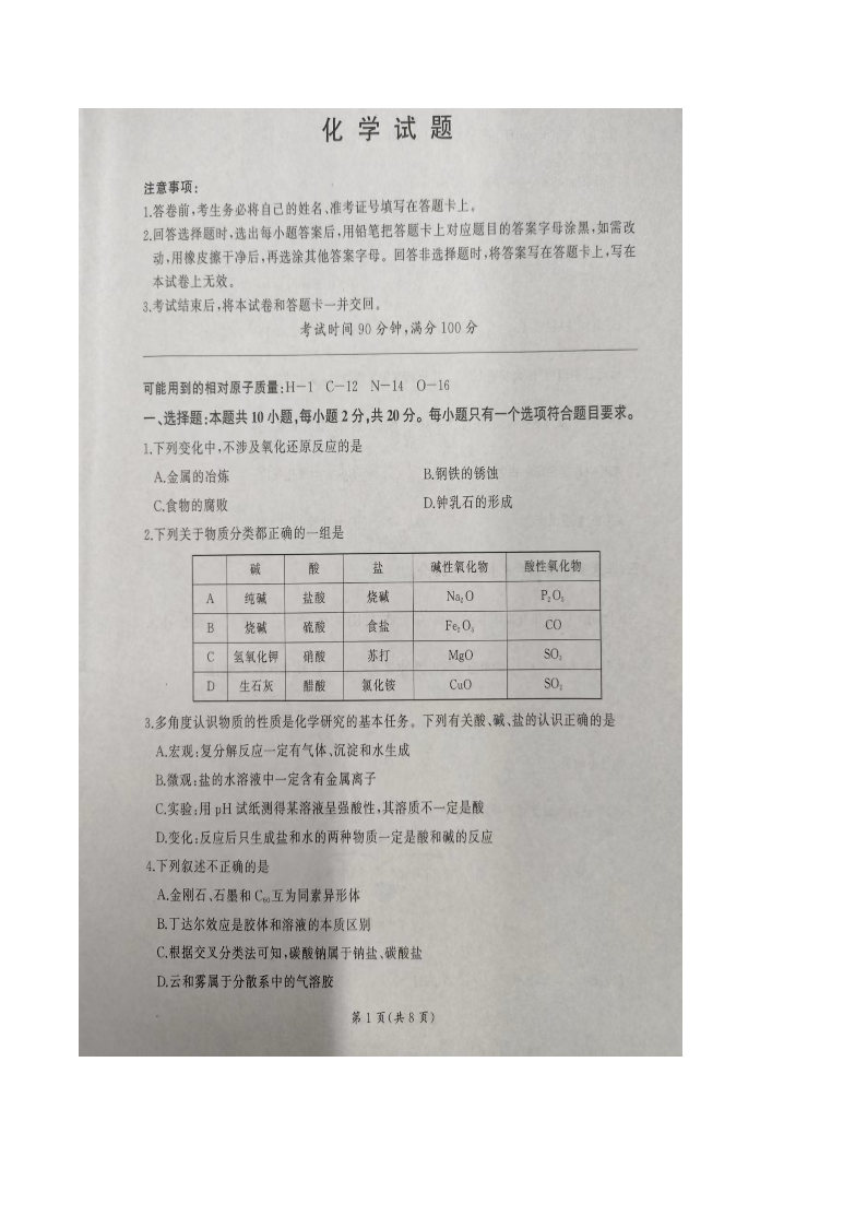 高一化学+答案--山东省临沂市部分学校2025-2026学年高一上学期10月联考