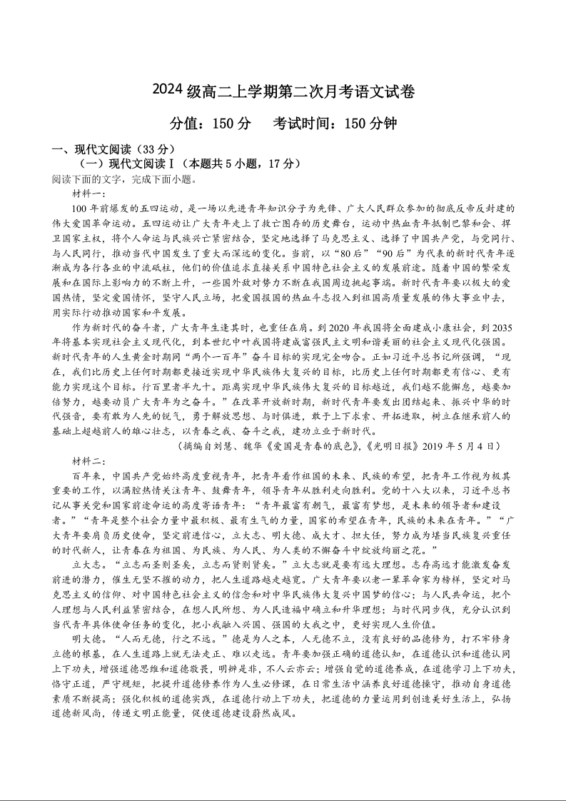 高二语文+答案--河北省保定市四校2025-2026学年高二上学期10月月考