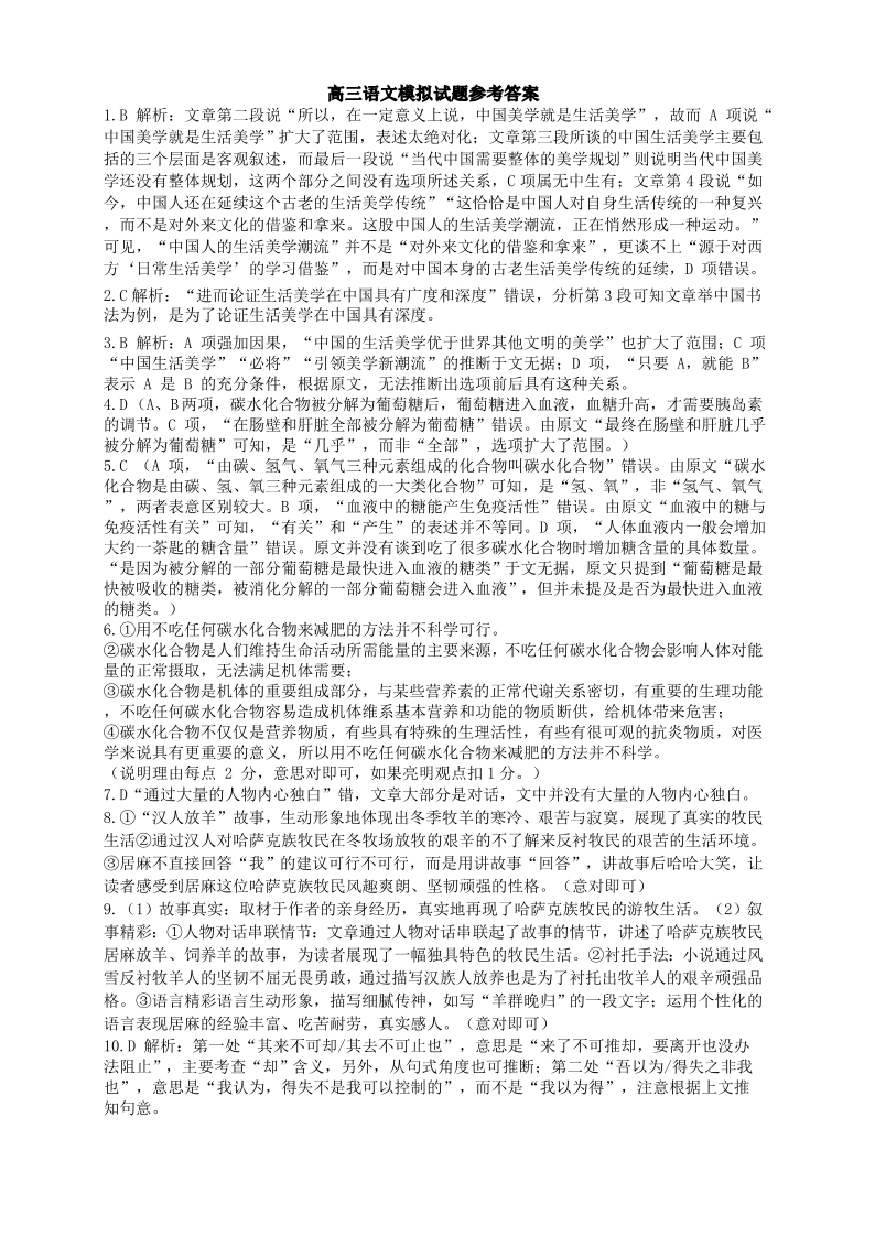 高三语文答案--河南省郑州外国语学校高三上学期1月调研考试(四)