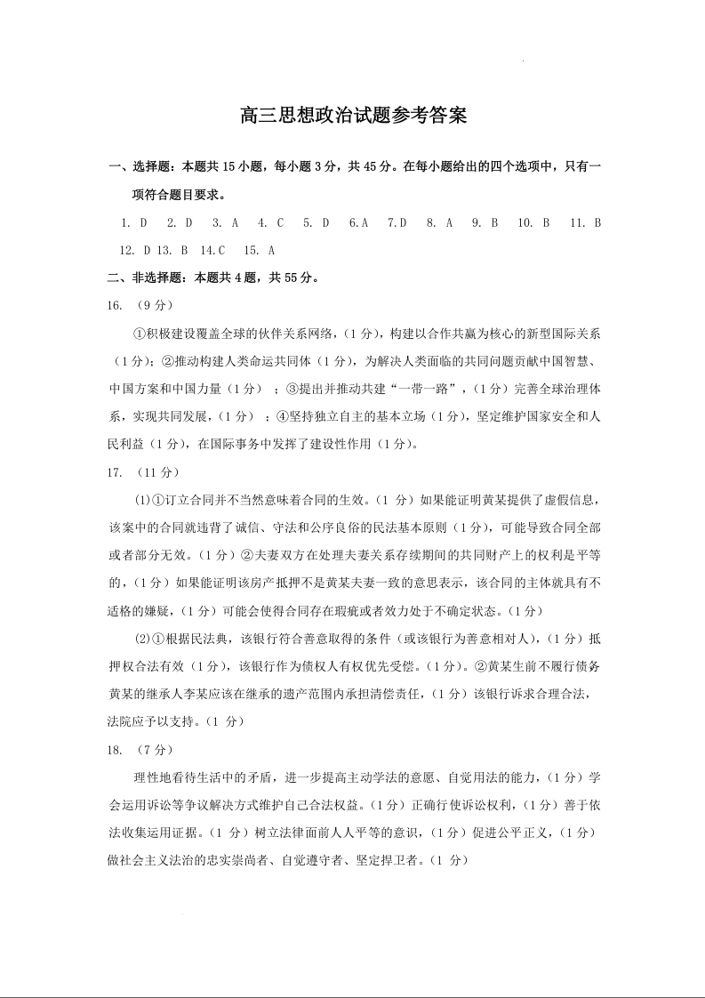 高三文综答案--安徽省滁州市2023届高三上学期1月期末