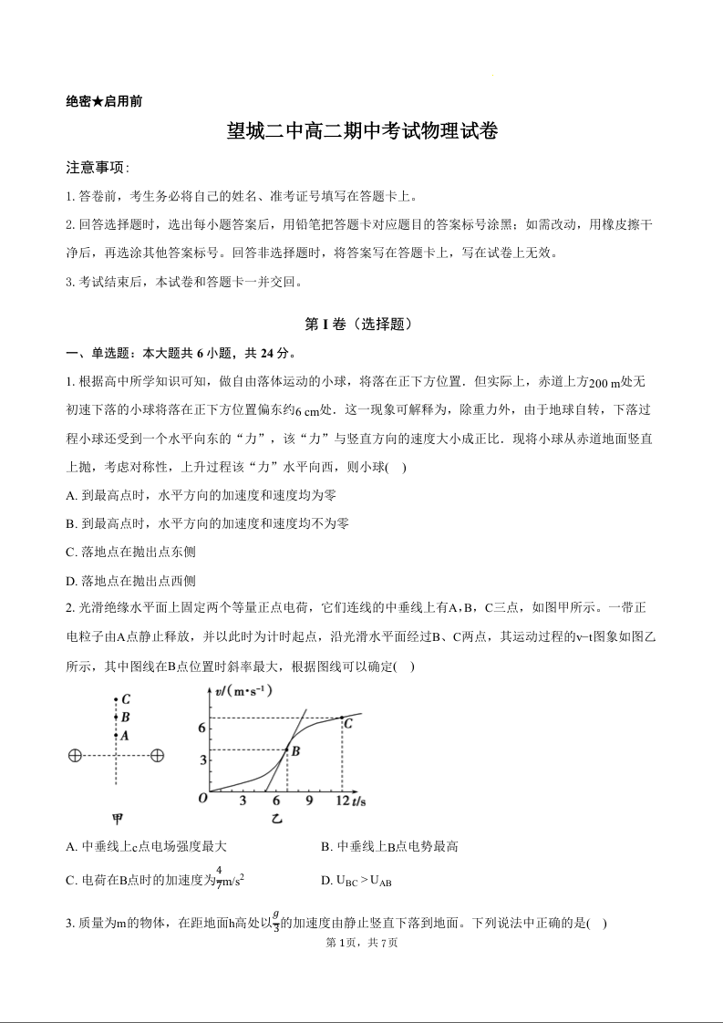 高二物理--湖南省长沙市望城区第二中学2025-2026学年高二上学期11月期中考试