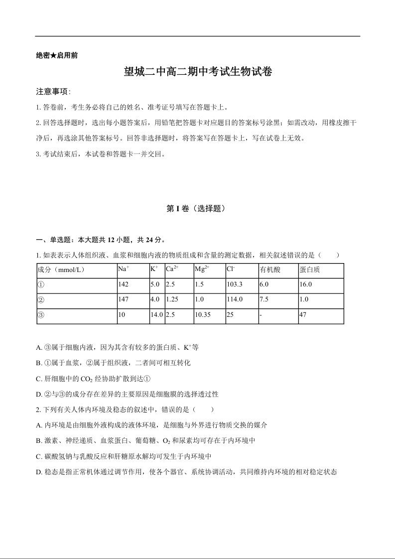 高二生物--湖南省长沙市望城区第二中学2025-2026学年高二上学期11月期中考试