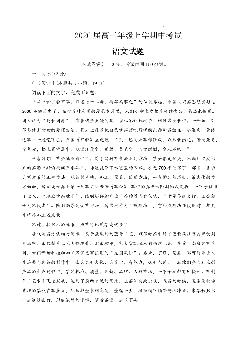 高三语文--河北省邢台市七校2026届高三上学期11月期中考试