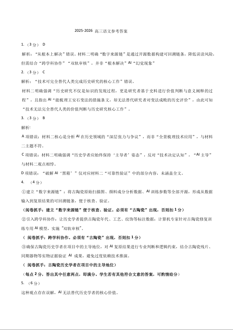 高三语文答案--山西省运城市2026届高三上学期11月期中调研测试