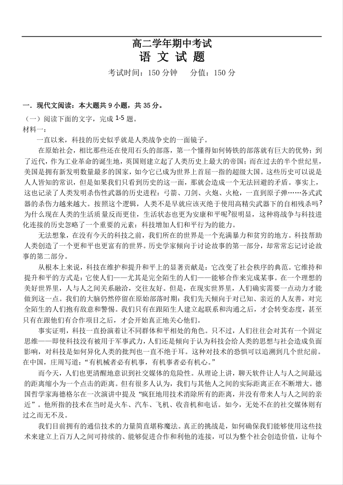 高二语文--黑龙江省牡丹江市第一高级中学2025-2026学年高二上学期11月期中考试
