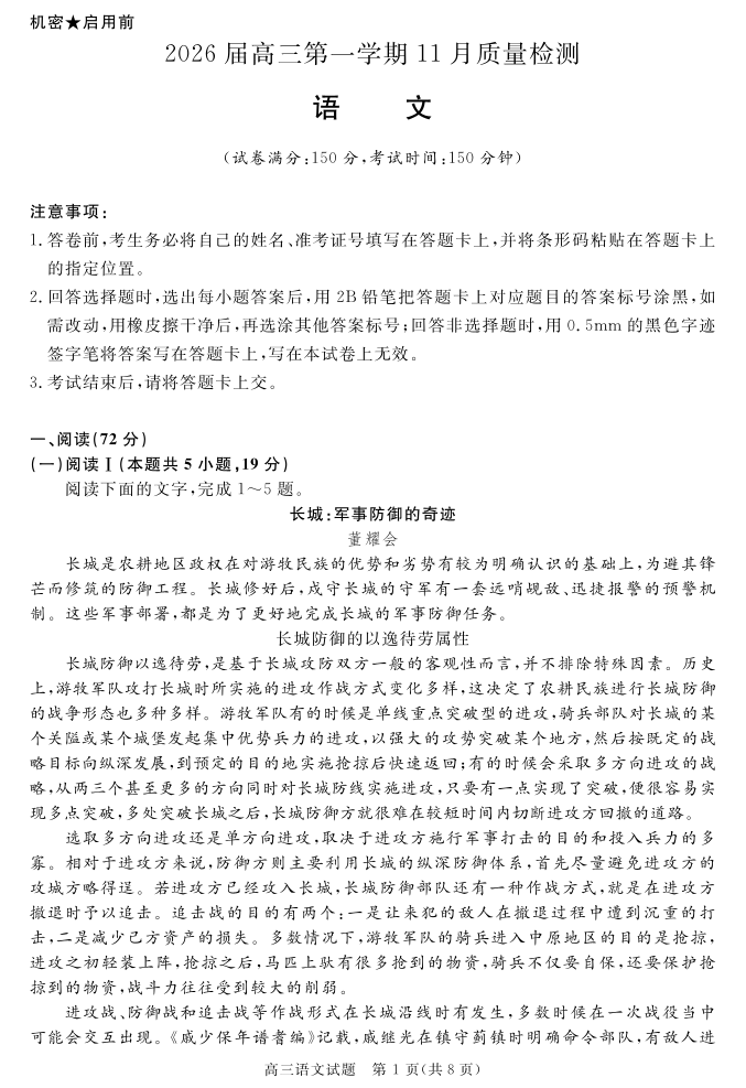 高三语文--安徽省华师联盟2026届高三第一学期11月质量检测