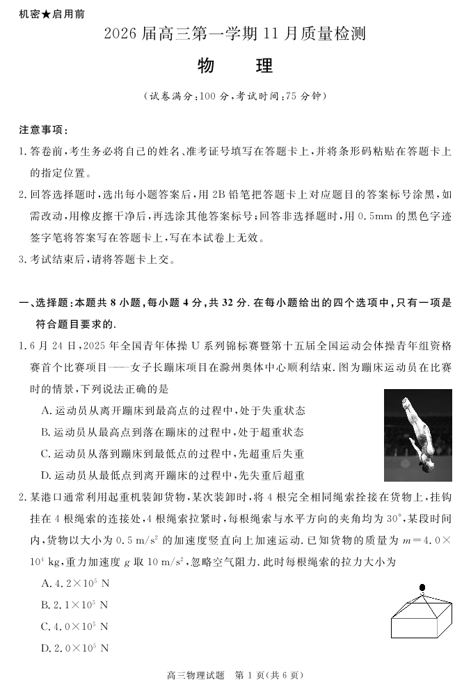 高三物理--安徽省华师联盟2026届高三第一学期11月质量检测