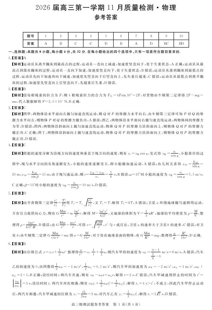 高三物理答案--安徽省华师联盟2026届高三第一学期11月质量检测