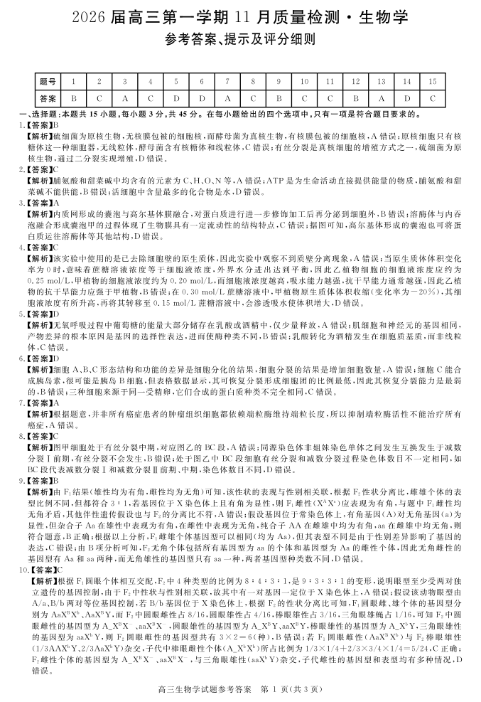高三生物答案--安徽省华师联盟2026届高三第一学期11月质量检测